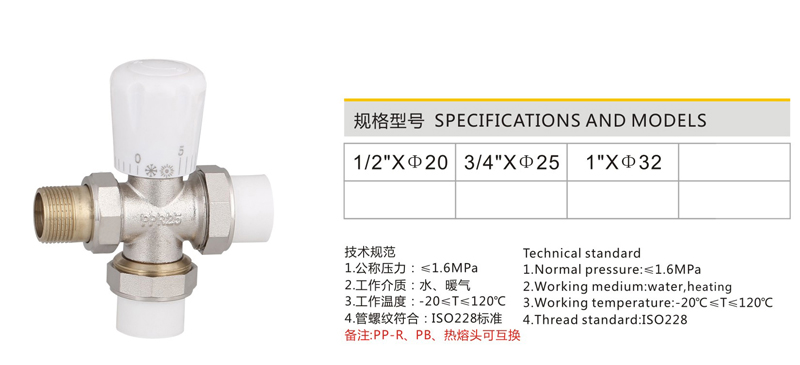 產(chǎn)品名稱:PP-R三通手動溫控閥 產(chǎn)品型號:CL0030 查看次數(shù):